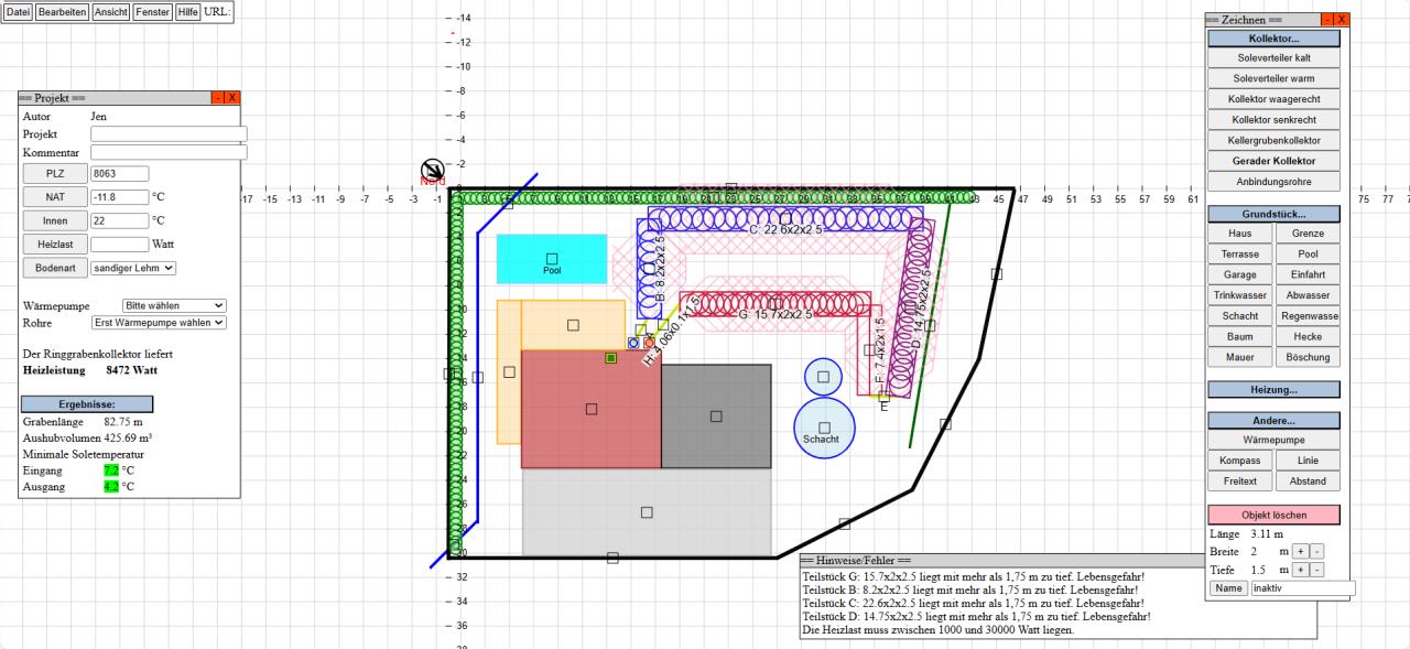 https://grabenkollektor.waermepumpen-verbrauchsdatenbank.de/enev-heizlast.html Daten wurde hier lt. EA eingegeben und das kam dabei raus. Deswegen auch die zusätzliche Kühlung über die KWL KWL [Kontrollierte Wohnraumlüftung]. |