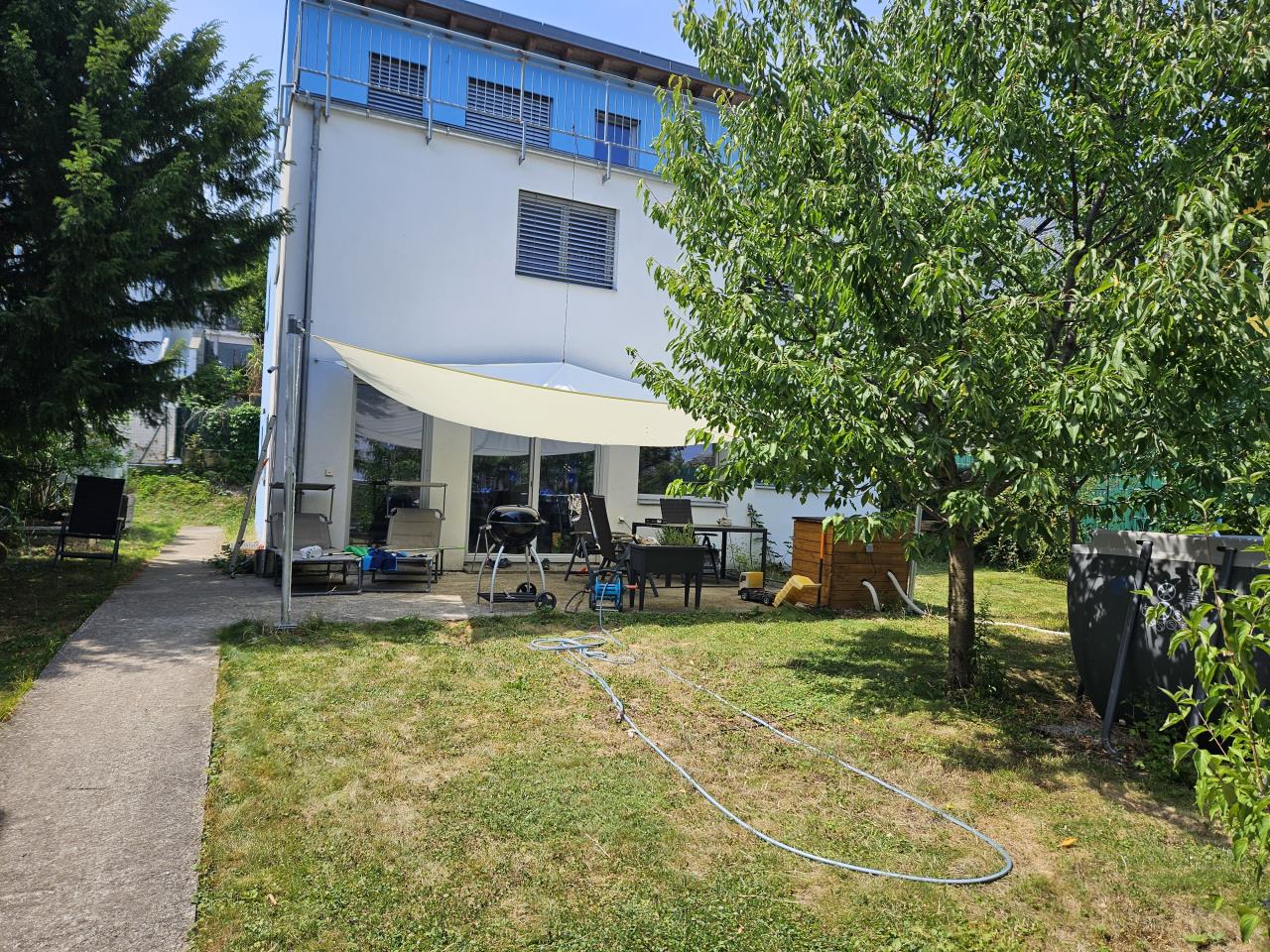Rein von der Logik: Zuerst die schweren Baugeräte, dann die leichten. Wenn du den schönsten Golfrasen hast und in 2 Jahren fährt der 5t-Bagger drüber, dann hast du wieder eine Mondlandschaft. Bauliche Massnahmen würde ich definitiv vorziehen. Wenn ich Stützmauer und Schuppen lese, dann wären das meine ersten Prioritäten wegen Geräteeinsatz. Ausser ihr kommt mit kleinerem Gerät aus oder arbeitet mit Schaufel und Scheibtruhe, dann geht das weitgehend zerstörungsfrei. Das hängt vom Umfang der Arbeiten ab (Höhe der Böschung). Pergola und Terrasse solltet ihr als Ganzes planen. Wenn ihr festlegt, wo die Steher hinkommen, dann betoniert man in dem Bereich ein Punktfundament und setzt die Säulenfüsse dort ein. Wenn ein kleiner Bagger dabei ist, ist es natürlich einfacher den Unterbau und Belag zuerst vorzubereiten und erst nachher die Pergola zu montieren, weil Bagger/Ladekran ansonsten nicht drunter passen. Das hängt aber auch davon ab, was für eine Unterkonstruktion ihr wählt. Bei Verlegung im Kiesbett kommt man gut voran und braucht nicht viel mehr als Handwerkzeug. Mit ein bisschen Geschick, Fleiss und Youtube-Tutorials kommt man auch mit begrenztem Budget ziemlich weit.