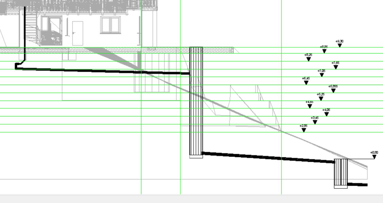 Vorteil: Der Absturzschacht kann großteils mit den Terassen hochgezogen werden, lediglich für den Schachtboden müssen wir ca. 2m nach unten beim Abstutzbauwerk (Schacht ca. 8m) als auch beim Putzschacht (ca 2,5 m) an der Grundstücksgrenze.
