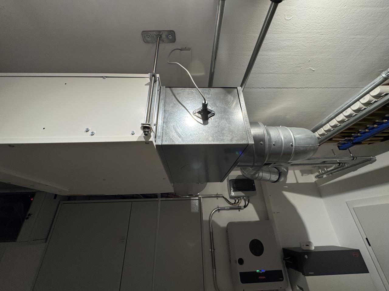im Adapter von HRDS auf Dn200 habe ich einen günstigen 0-10V Feuchte- und Temperatursensor verbaut. Mit einem 0-10V Ventil im HRDS Gerät kann ich so die Auslasstemperatur mit einer Logik regeln lassen was im Betrieb gar nicht so schlecht funktioniert. Standardmäßig ist ein On/Off Ventil im Gerät verbaut allerdings sind meine Spiro Rohre nicht Isoliert daher wollte ich eine stufenlose Regelung.