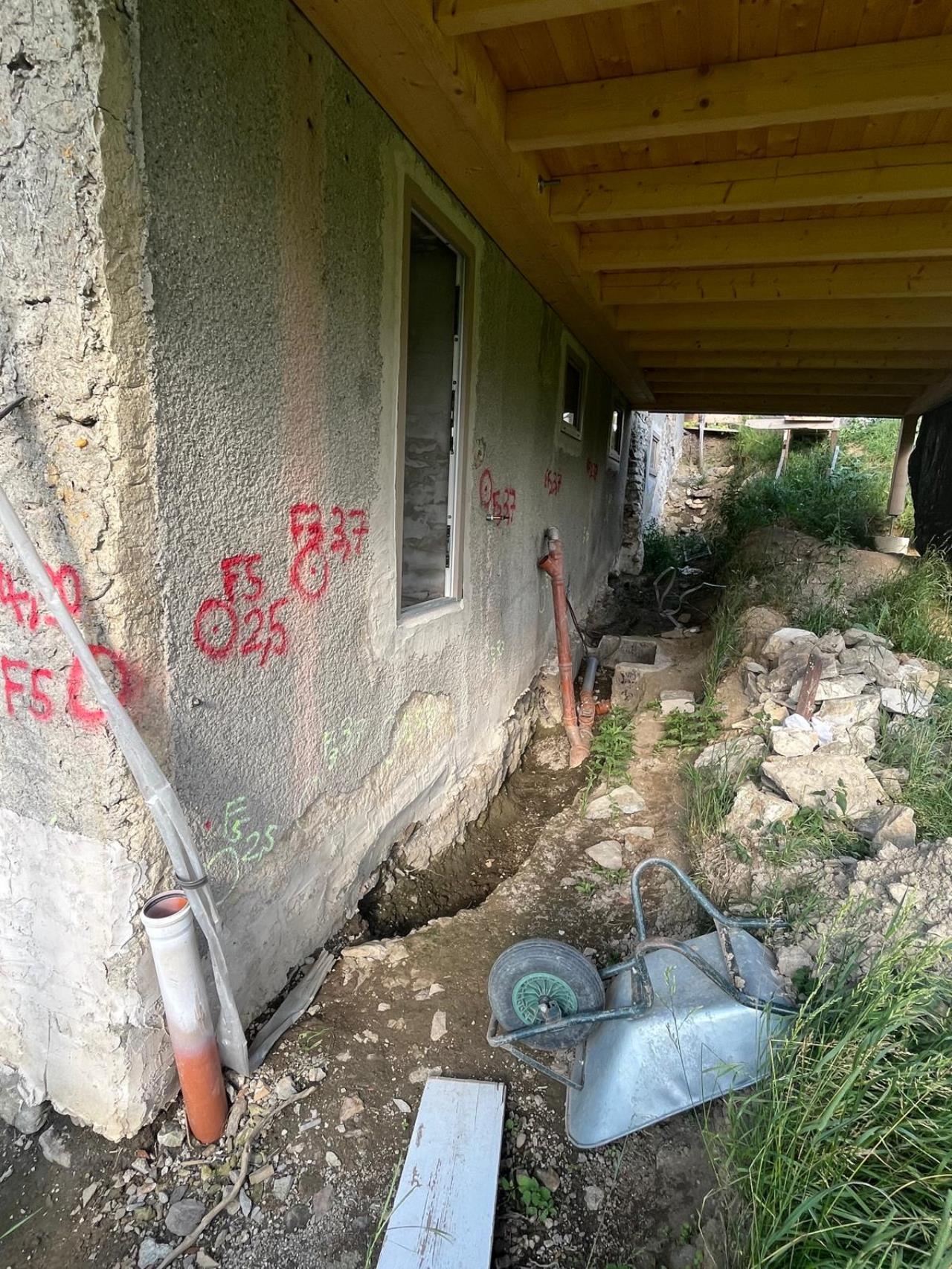 -) Wie ist dann die beste Vorgehensweise. Gerade Verputzen, dann bitumenhaltiger Anstrich und im Anschluss die Dämmplatten? Außen Schotte inkl. Drainage? Baumeister hat gemeint er würde gar nicht zu weit runter graben, weil die Mauer sowieso im Erdreich steht und keine horizontale Feuchtigkeitssperre vorhanden ist und außen nur mit Dichtschlämme arbeiten und gar keine Dämmung aufbringen aufgrund des Niveauunterschieds. Mit Dämmung erst ca. 50 cm unter Fussbodenniveau beginnen und mit Schotter ausfüllen damit Mauerwerk dort austrocknen kann. Statt einer Drainage würde er nur eine Schotterschüttung machen, weil das Wasser sowieso dort abrinnt und nicht in das Drainagerohr läuft.