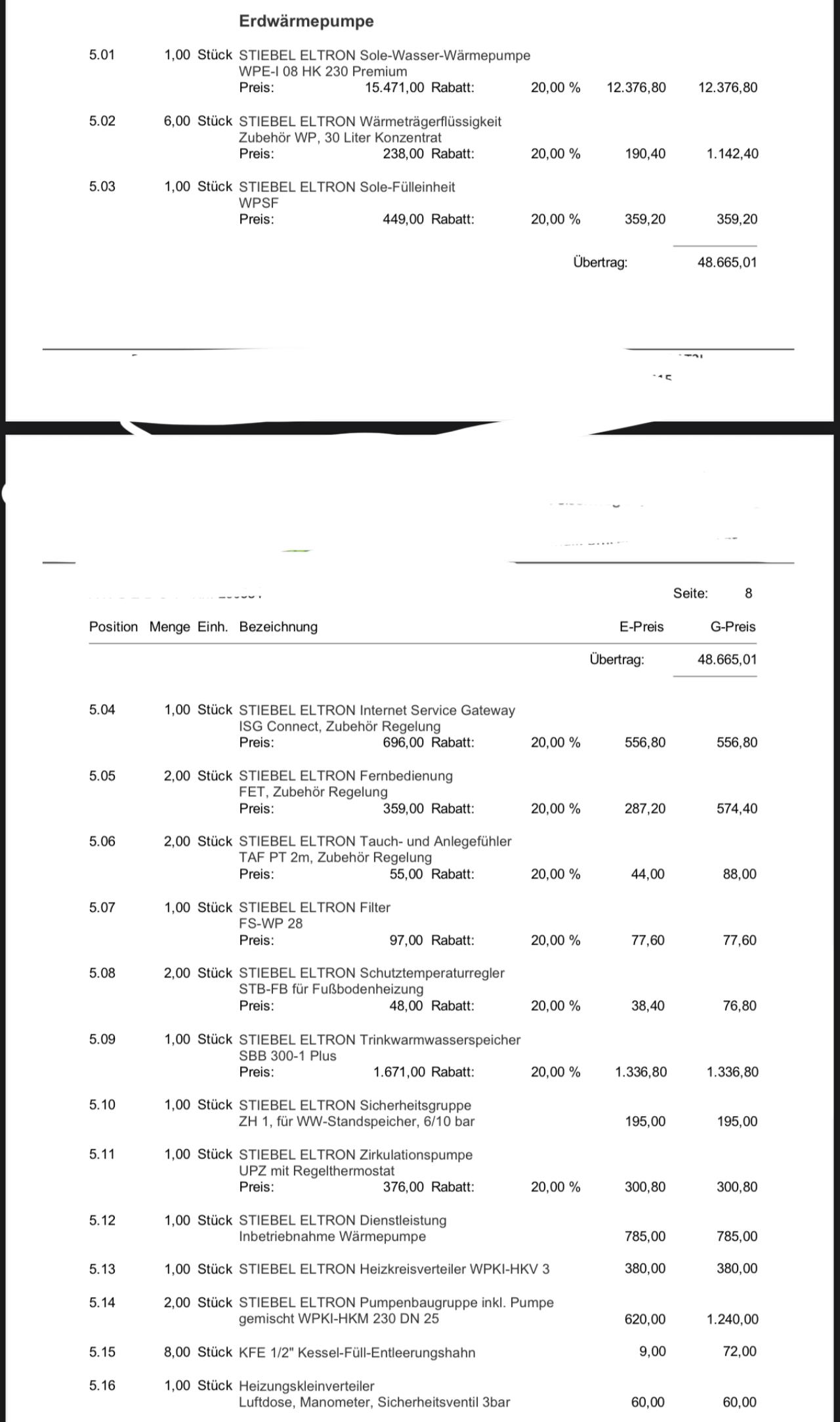 Ich habe auch eine andere Angebot mit Stiefel Eltron WPE-I 08 HK 230 Premium bekommen, allerdings auch nicht günstiger,  RGK nicht inbegriffen.