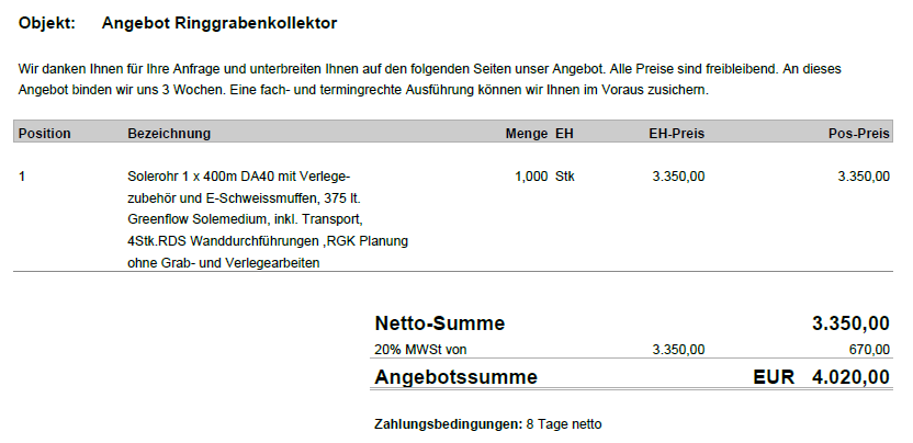 Das Angebot ist leider nicht so detailliert, aber diese Posizion sind grundsätzlich die Kollektoren im Garten, ohne Erdarbeiten und Schacht.
