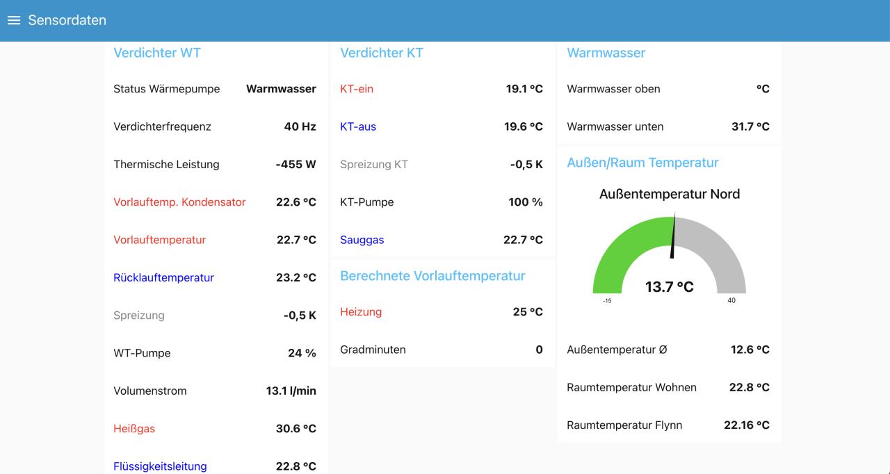 so, gerade WW WW [Warmwasser] fertig geworden, ist ohne Fehler durchgelaufen. Habe auch das Logging aktiviert. Hier vorab mal 3 Screenshots von NibePi (Danke an Becker für das tolle Dashboard!!) Vor dem Start ![]() Startphase WW WW [Warmwasser]-Bereitung ![]() Mittendrin ![]() Und kurz vor Erreichen der Stopp-Temperatur bei 45 Grad ![]() Siehst Du irgendwas auffälliges? |