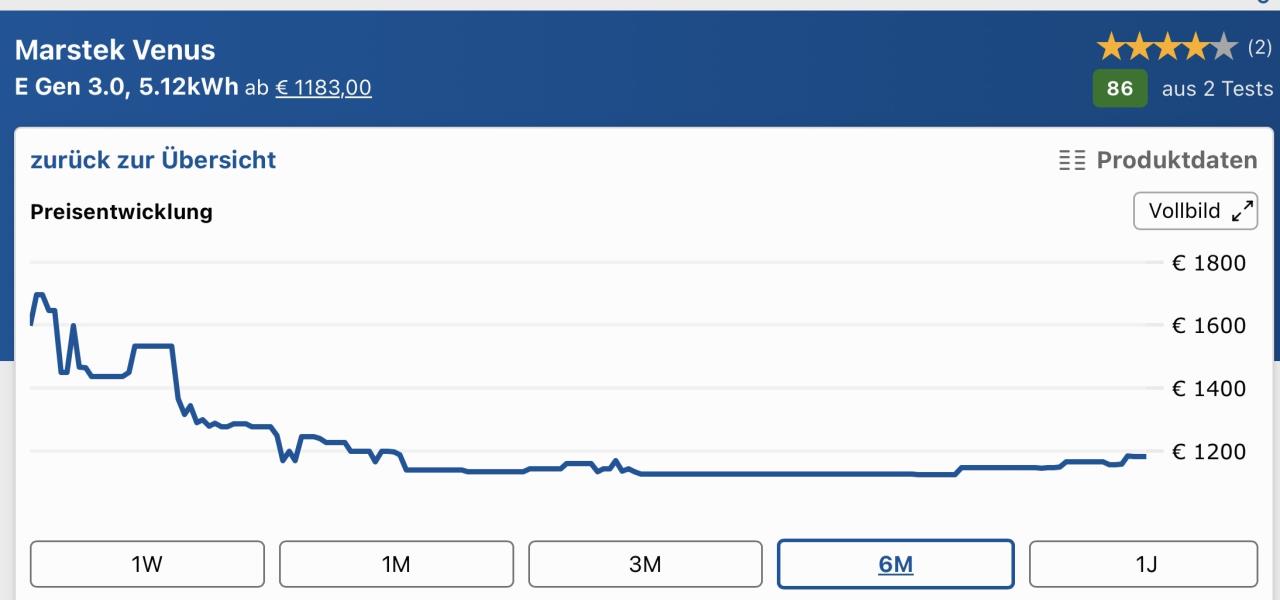 Hallo norika, hier gibt es dazu Erfahrungen und Preise: [Gelöst] Marstek Venus -E Gen 3.0 AC |