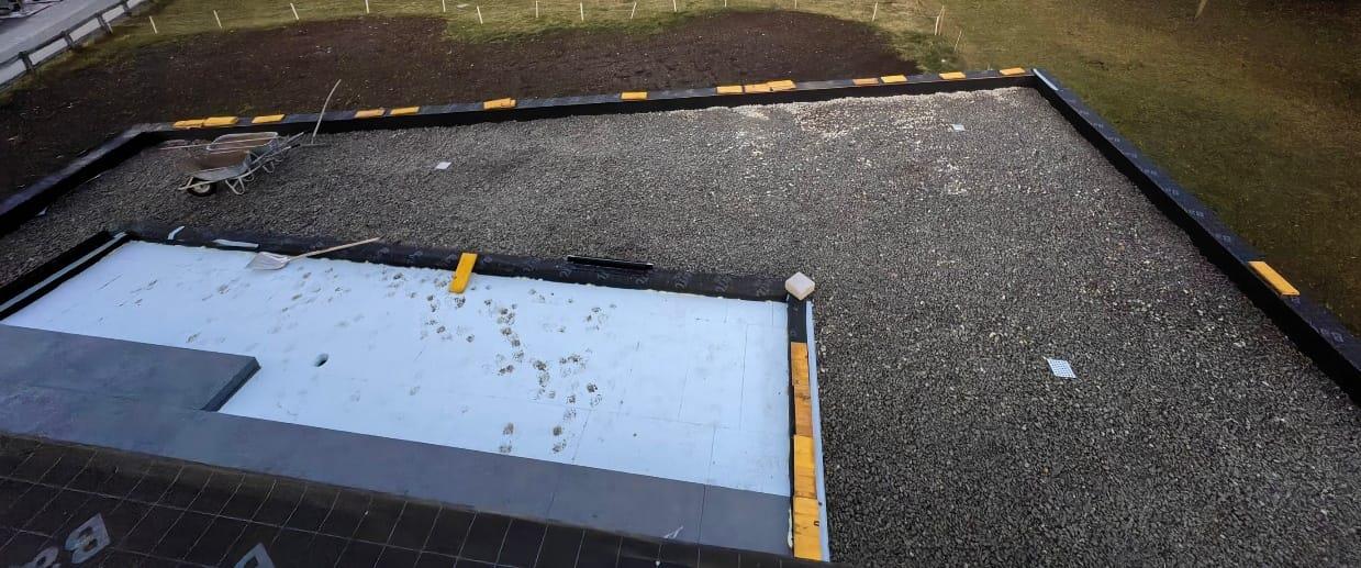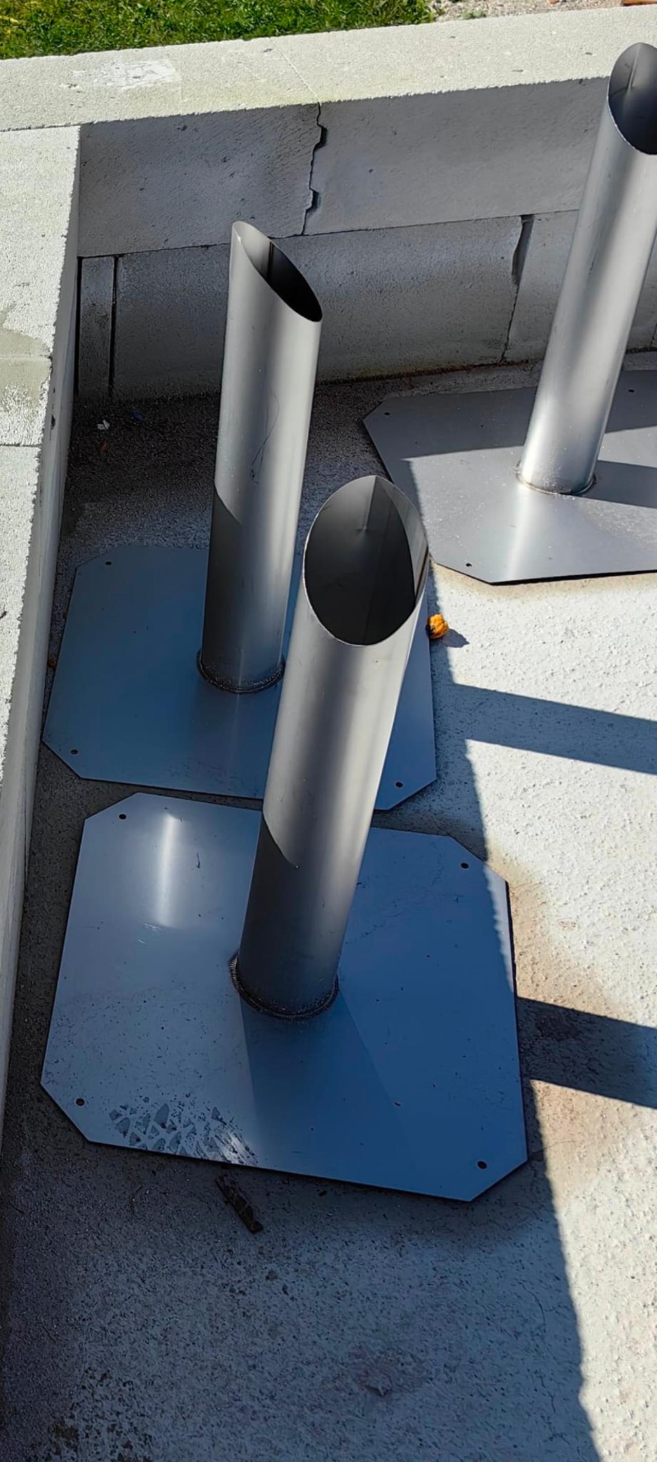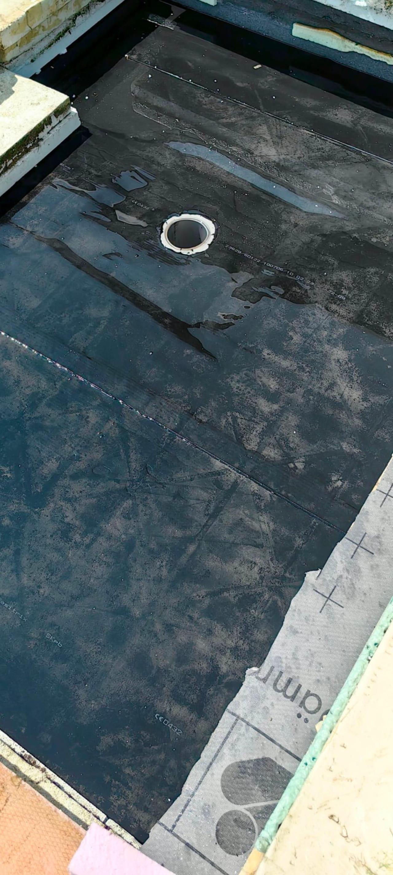 Unser Spengler hat die Stutzen eingelegt, Das Dach und die Abflüsse wurden mit Resitirx und Flüsigkunststoff abgedichtet.