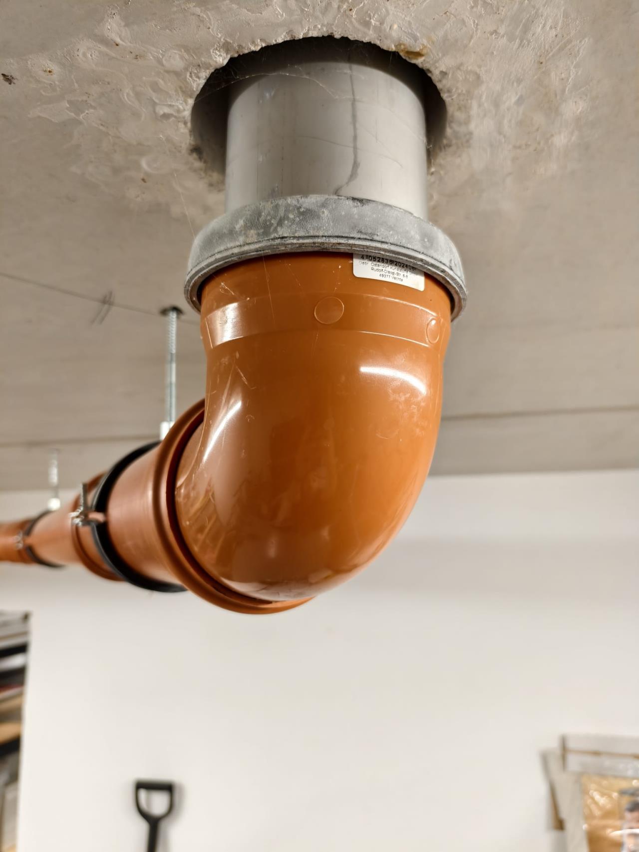 Die beiden Abflüsse in den hinteren Räumen funktioneren reibungslos da durch das Gefälle der übergang vom Stutzen zum PVC unterhalb der Betondecke erfolgt. (Siehe Foto)