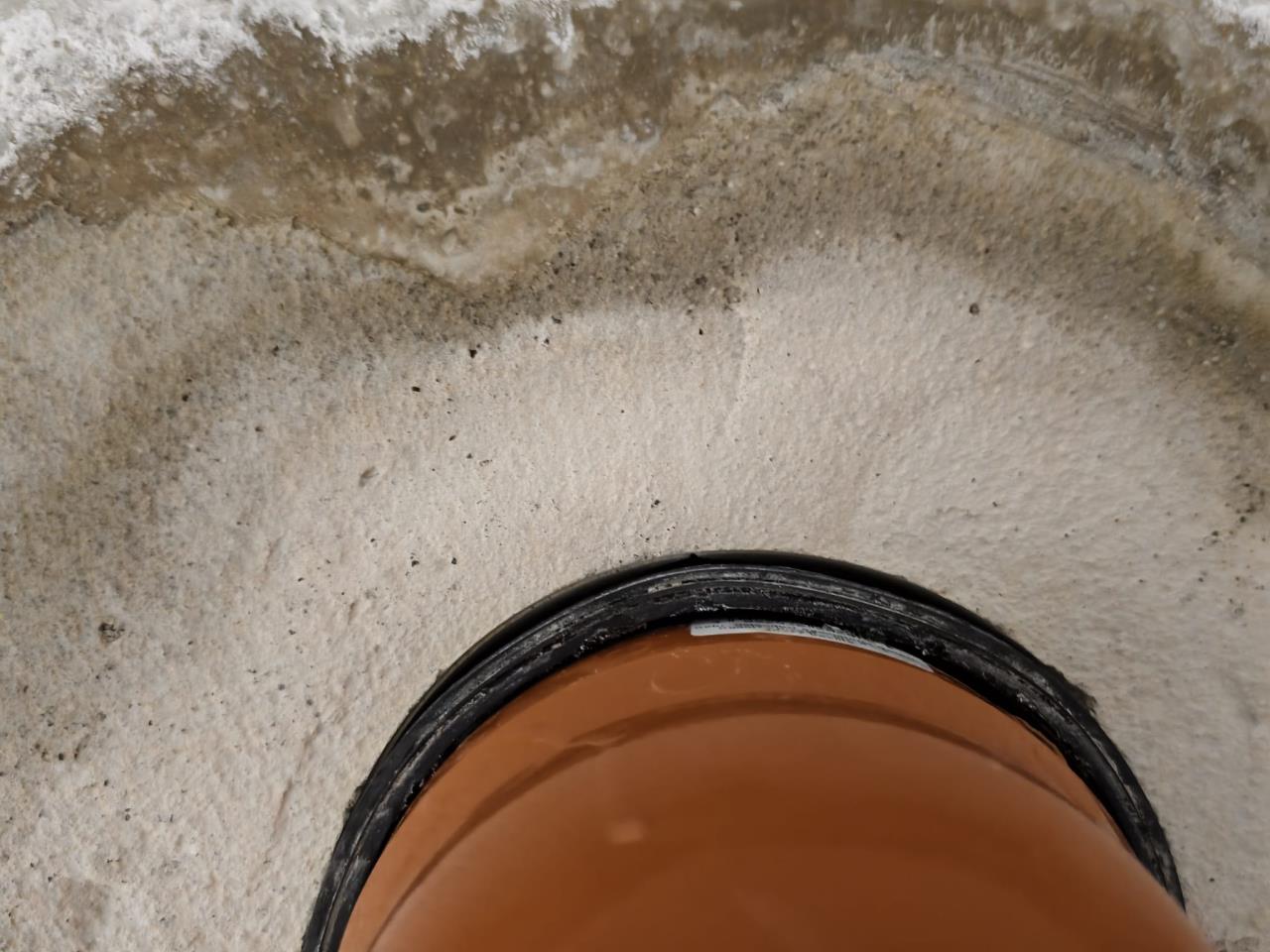 Dadurch daß er ja direkt unter dem Beton aufhört und in den Rohrbogen einläuft könnte es ja beim Regen auch zu einem Stau kommen und dadurch tropft das Wasser raus?