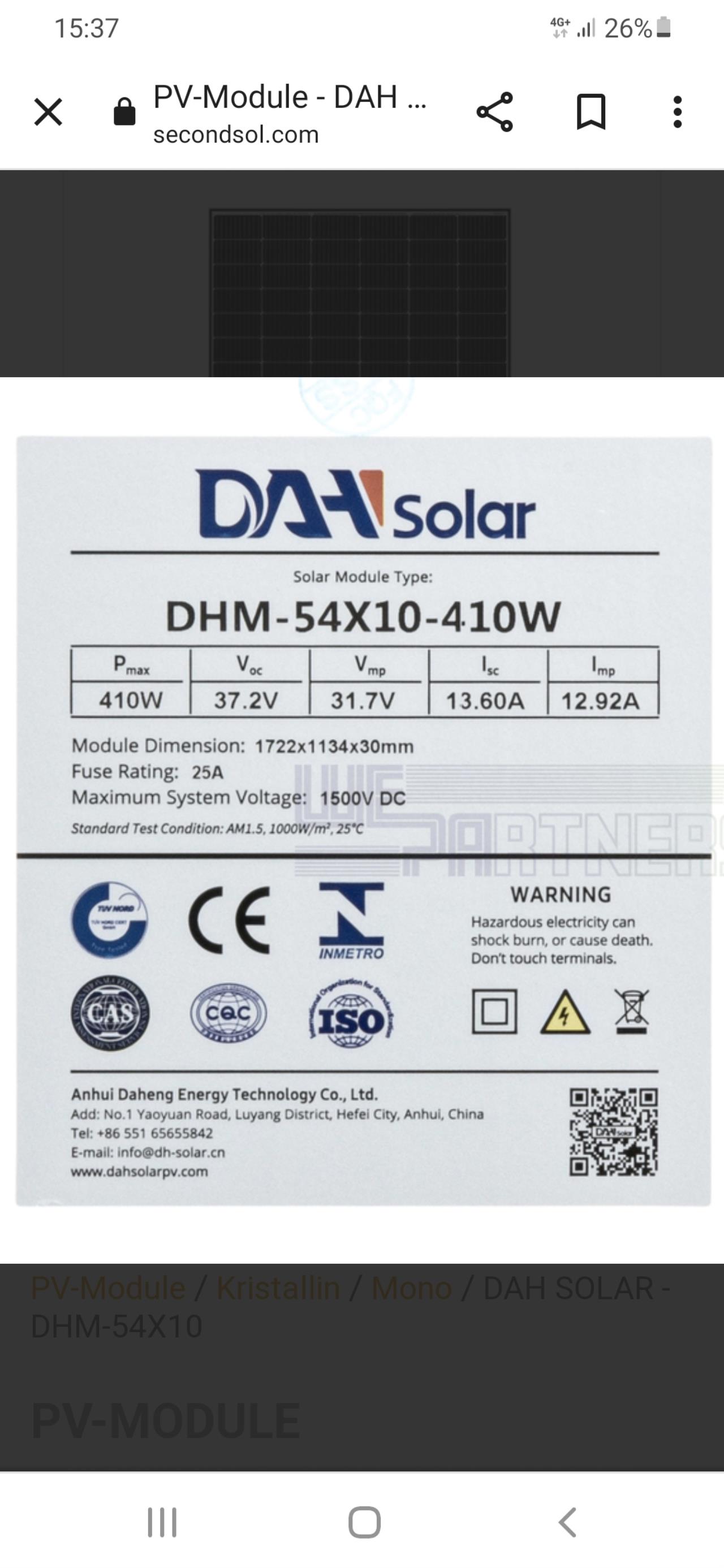 Installiert sind 2x410Module von DAH.