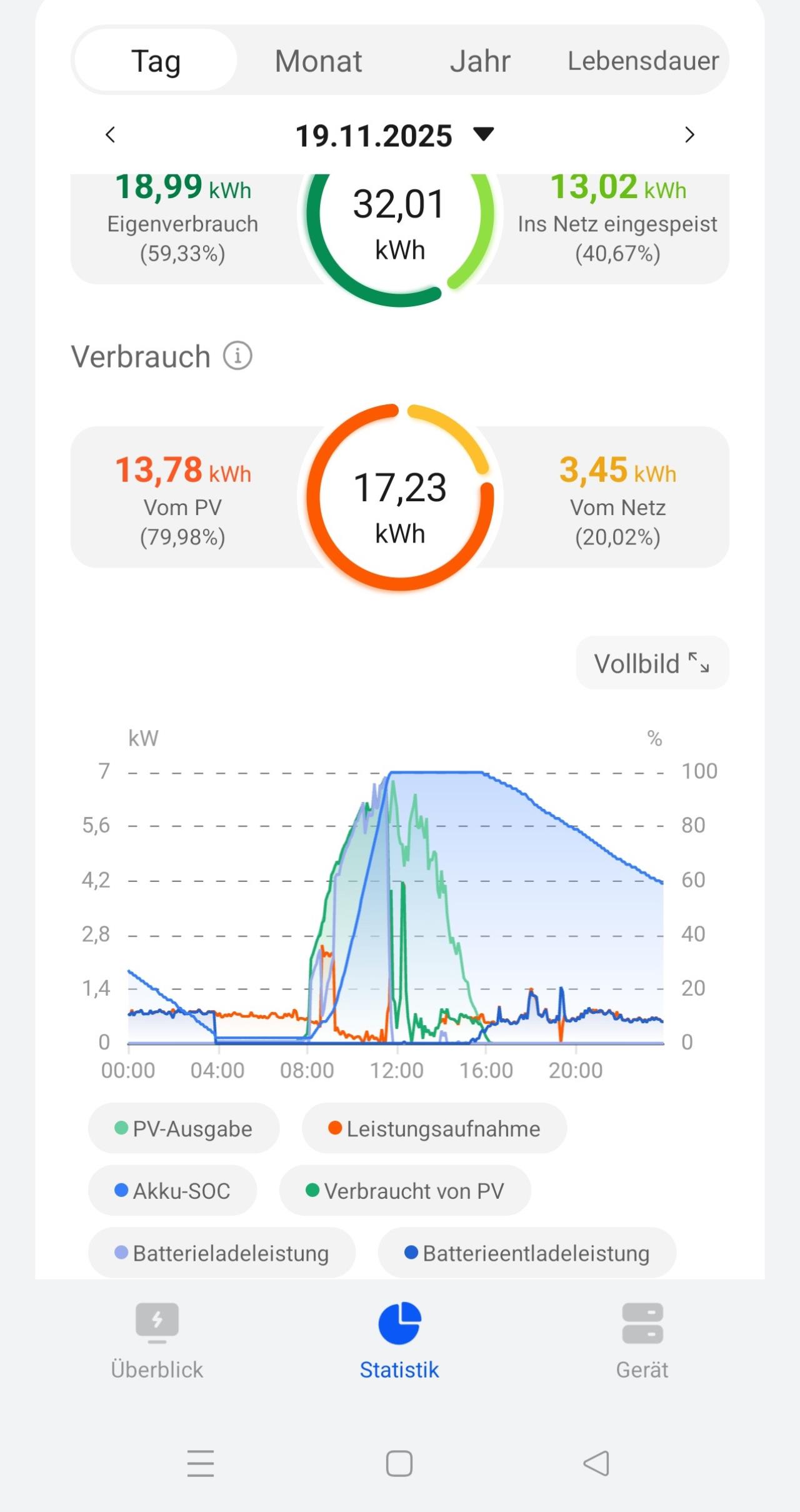 Und ja, nicht so wenig Verbrauch, ist ein Haus mit 3 Generationen / Familien + im Sommer machen wir Warmwasser mit PV und fahren 2 kleine i3s.. Übers Jahr werden es wohl 10-11MWh, davon 8-9 über PV.