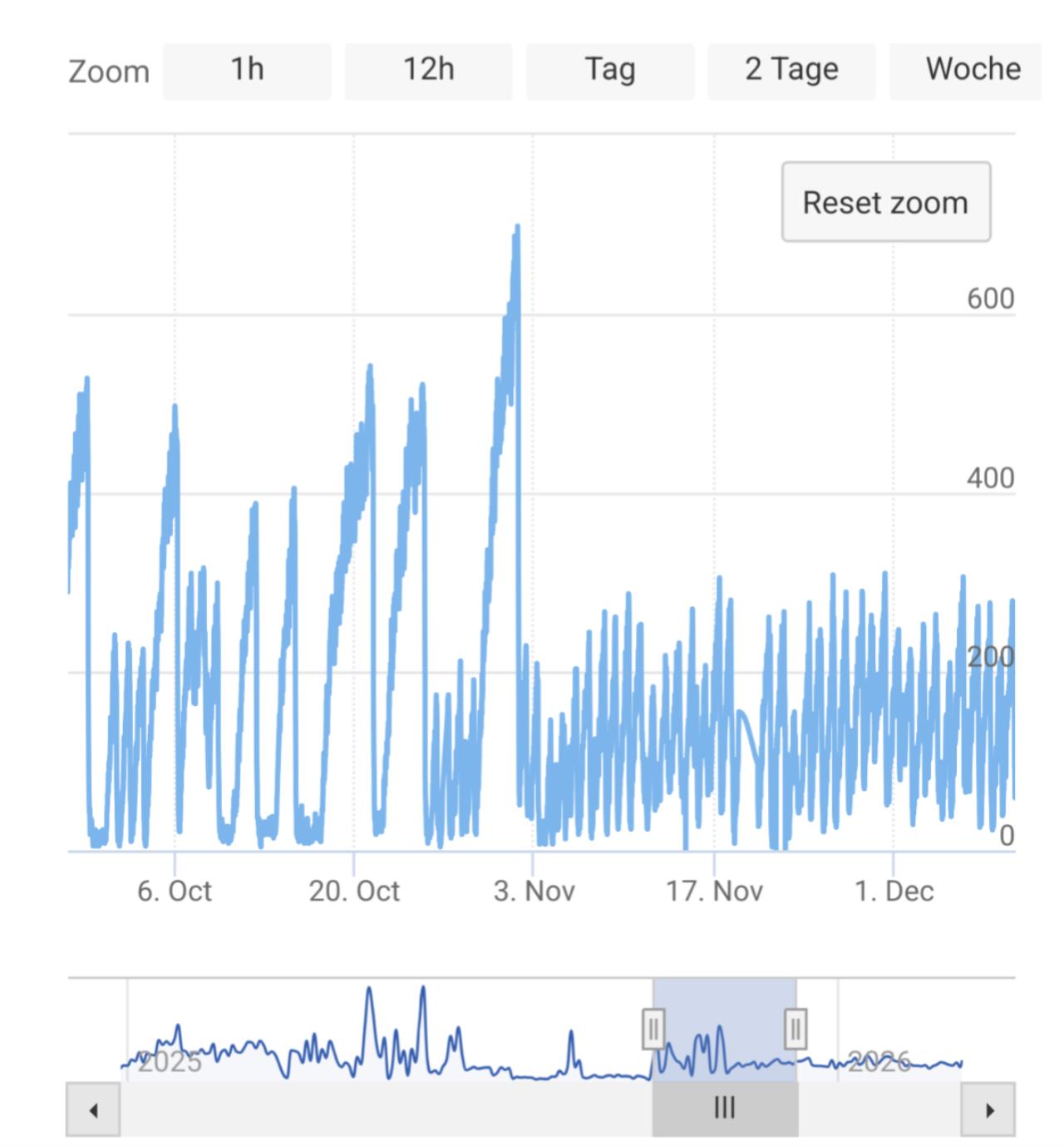 Bei mir schauts ähnlich aus, wenn ich nicht täglich lüfte: Man sieht deutlich wann ich mit dem manuellen täglichen Lüften begonnen habe. @leitwolf: ich würde das Ganze auch gerne automatisch machen, darf/soll ich mich per Mail an euch richten? |
