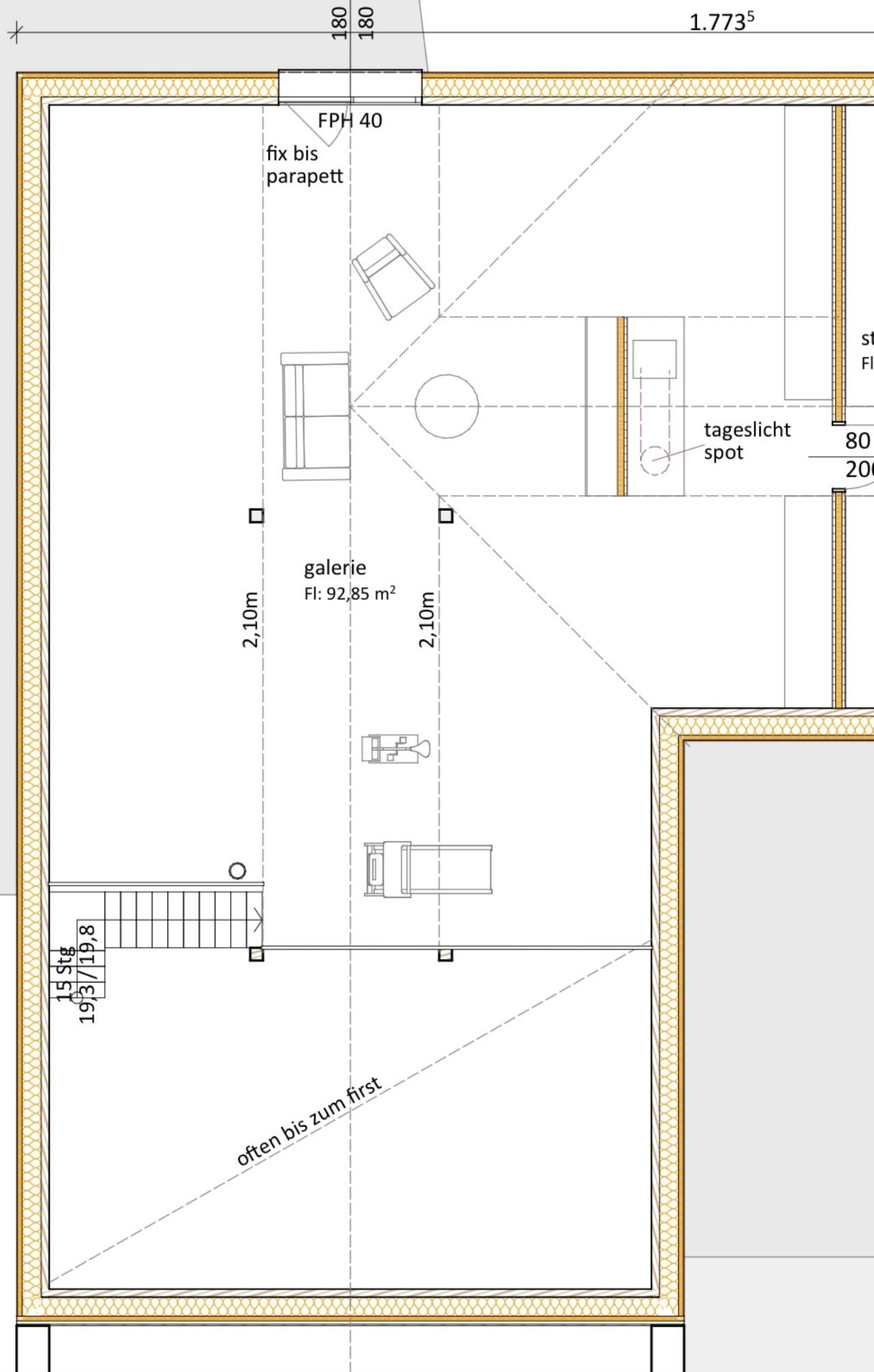 Wir bauen eingeschossig und planen eine relativ große Galerie unter dem Satteldach welche vom offenen Wohnraum erreichbar ist. Wir wollen diese hauptsächlich als Fernseh- und Spielzimmer nutzen.