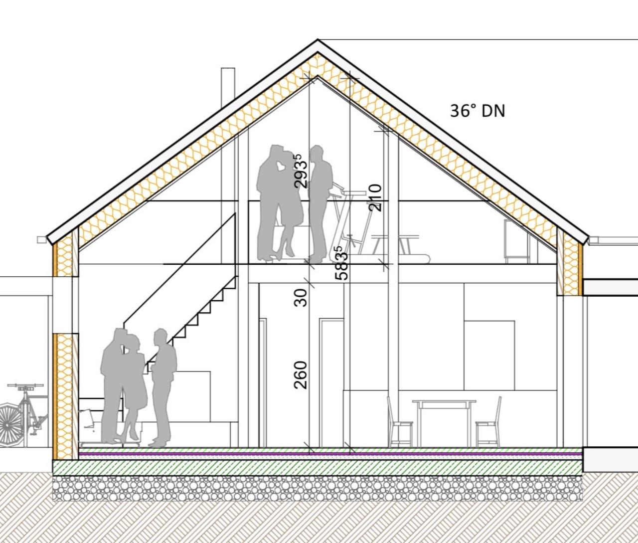 Wir bauen mit CLT, dh die Zwischendecke und die Außenwände sind aus Holz. Die Heizung erfolgt über eine Erdwärmepumpe und wir planen eine