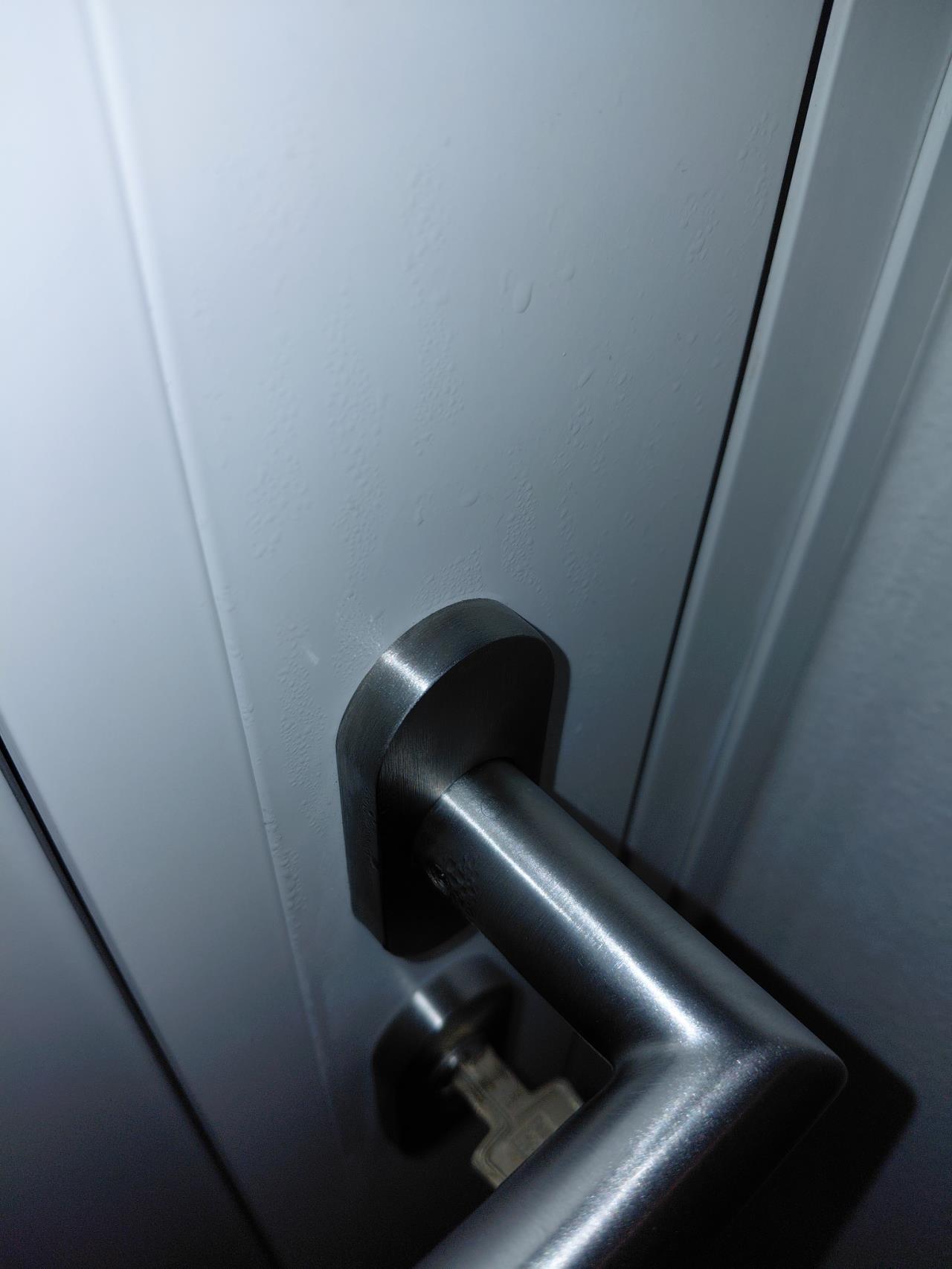 Die Oberflächentemperatur von Tür und Zylinder wäre auch interessant (Malerklebeband aufpicken und mit IR-Thermometer messen), falls möglich. Wenns bei der Dichtung rausrinnt, ist die möglicherweise nicht dicht und warme, feuchte Luft strömt hinaus. Ist da im Falz vermehrt Kondensat oder ist der trocken? |