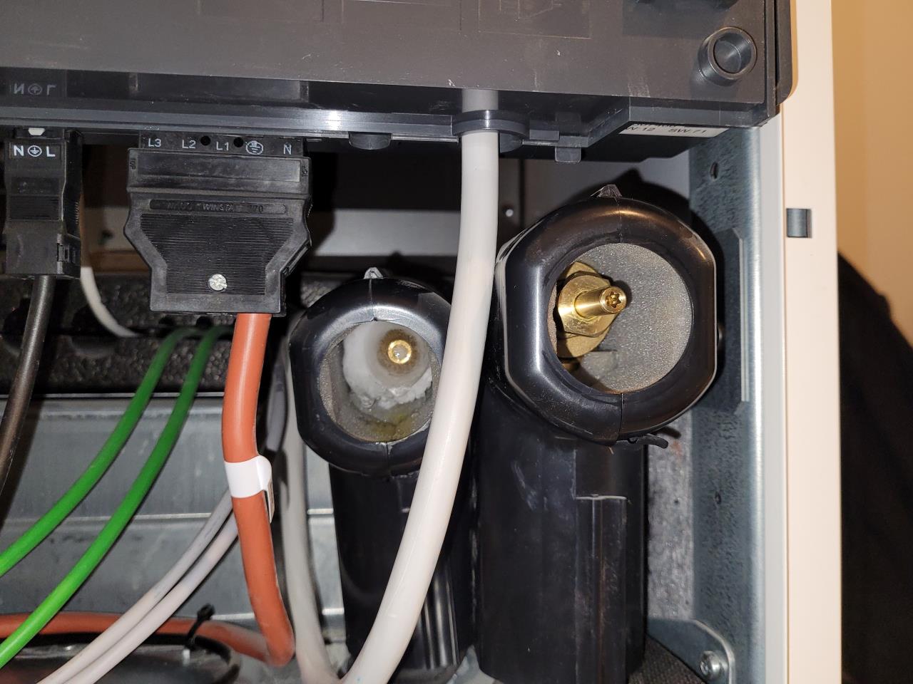 Mach mal die schwarze Dämmschale ab und verfolge die Rohre. Dann solltest di doch fündig werden wenn es so viel Wasser ist. Evtl nur ne kleinigkeit |