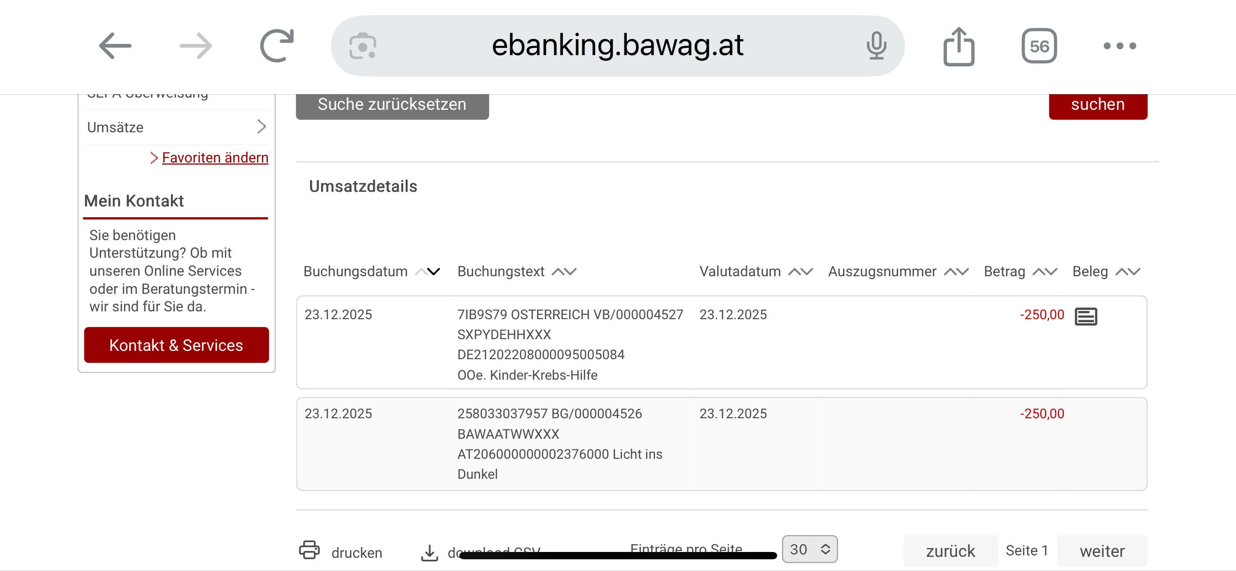 Screenshots der Überweisungen, anklicken öffnet Bild in neuem Browserfenster